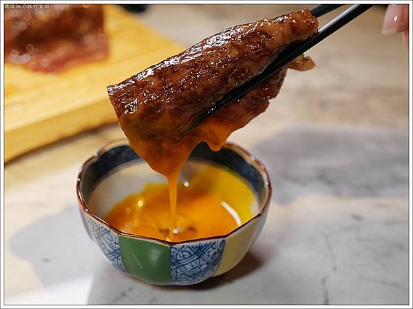 沾上蛋液,有種壽喜燒的概念,味道也圓融許多,潤滑的口感在嘴裡奔放