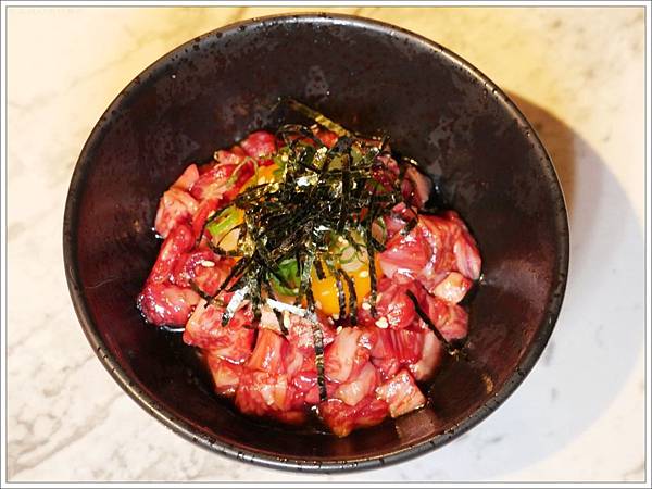 「生牛肉塔塔」$380,澳洲M9和牛肩小排切丁。