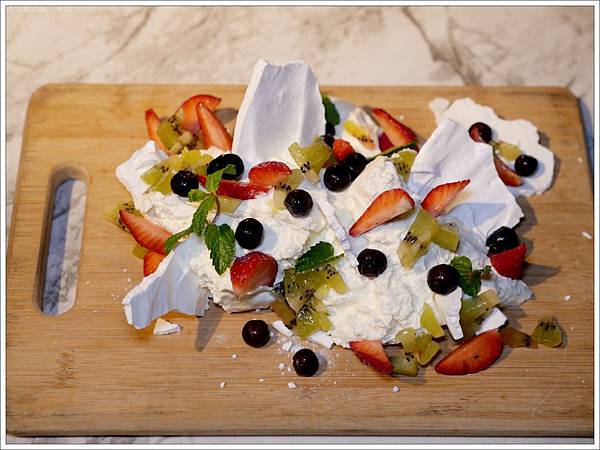 「奶油派對」$580,上面滿滿的新鮮水果,本體由馬茲卡邦乳酪與鮮奶油製成,還有蛋白餅,喜歡甜食的絕對會尖叫!