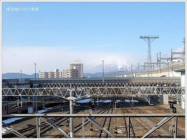 搭乘新幹線到盛岡車站,再轉飯店接駁車。在車站就在看到遠方的岩手山, 雫石王子大飯店就在山腳下喔。