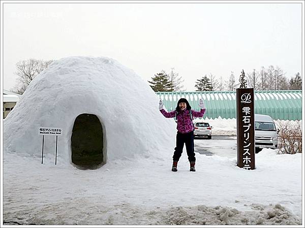 今年日本很缺雪,終於在下車的時候看到雪,壞波妞超級開心的。光是在門口的雪屋就拍照拍個不行,而且因為滿腔的熱血完全沒感到冷,壞波妞連外套都沒穿就跑出去玩了十幾分鐘。