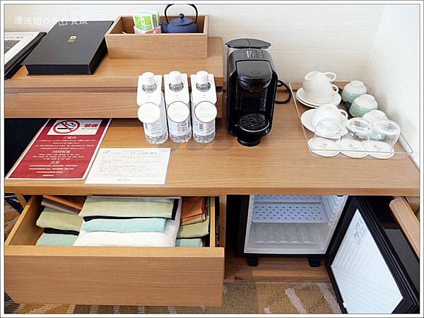 浴衣在抽屜裡,要去大浴場跟餐廳都可以直接穿過去。雖然咖啡機是UCC不是 Nespresso,但看到咖啡機就覺得高興跟高級