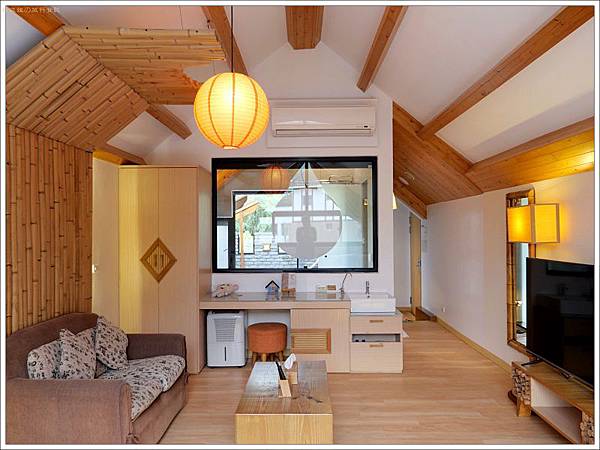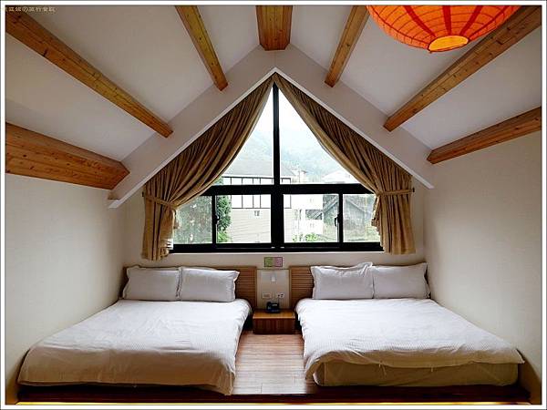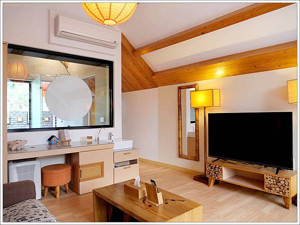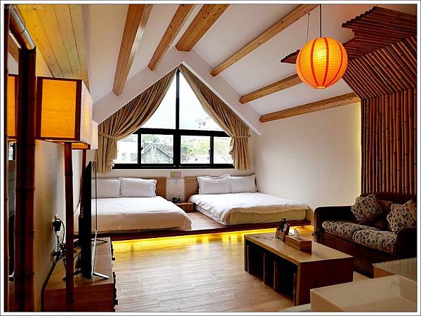 我們今晚入住的房型是「邊城四人房」,房間大約有13坪,房內有二張雙人床、小客廳、浴廁、露台。房間打掃得非常乾淨,而且即便是木造而且位處濕氣重的山區,房間仍然維護得很好,完全沒有異味。