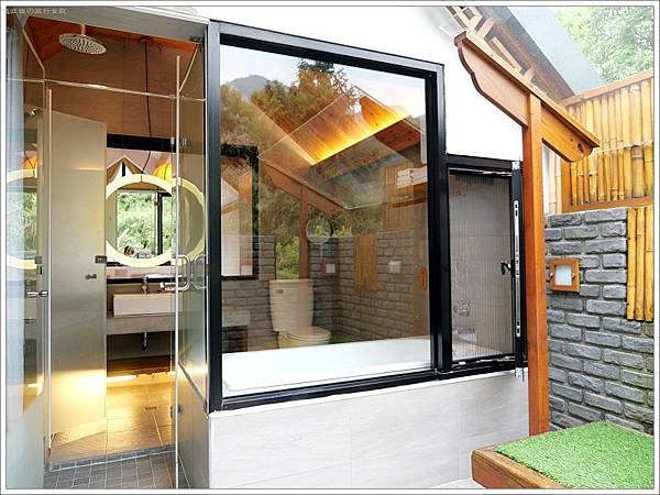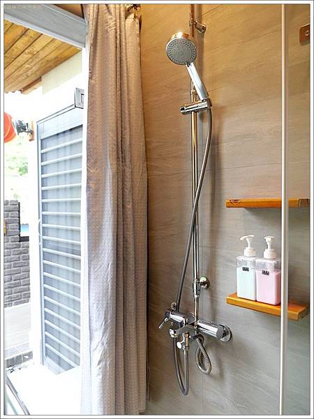 淋浴間很特別,有二個門,一個通往浴室,一個通往露台,超方便!