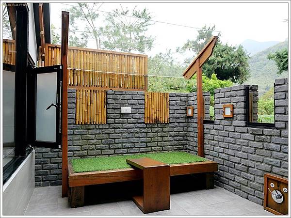 露台上除了浴池外,還有長椅可以坐,堆砌的石牆,讓自己覺得住在城堡裡,像個國王或公主。