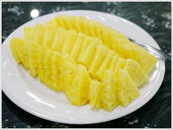 今天的餐後水果是鳳梨,跟螢火蟲同季節的水果,外面的螢光愈閃耀,鳳梨就愈甜。
