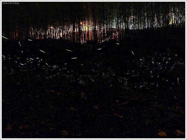 吃完晚餐的賞螢重頭戲來了! 原本要去三生縁區,鹿谷最佳賞螢地點之一,但我們超幸運的,聽濤園對面的竹林區就已經螢火蟲大爆發,所以我們只要走出去就可以看到滿滿的螢火蟲。