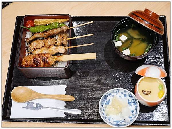 串燒定食,也有漬物、蒸蛋及味噌湯。