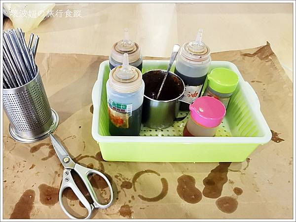 調味料在桌上可以自己加,然後店家不會幫忙剪蛋餅,所以有剪刀,可以自己把想剪的東西剪一剪。