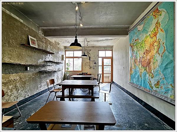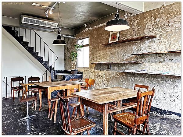 咖啡館裡舊中帶新,地板是懷念的磨石子,牆面有經過整修重新上色,但仍保留著老屋原本的內在