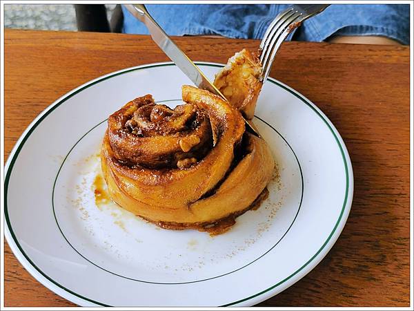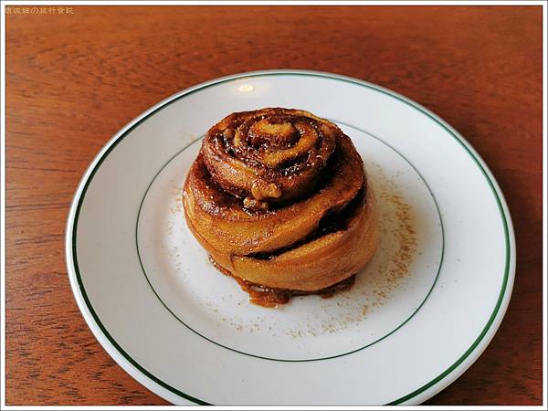 其實我不是一個喜歡肉桂味道的人,所以我只喝拿鐵不喝卡布,但這個肉桂捲我可以ㄟ,也許是因為還蠻甜的。不過肉桂捲搭拿鐵咖啡好像很棒,也許以後我也會喜歡卡布吧。