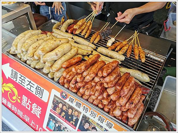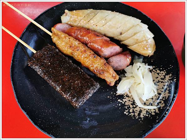 烤得米血就沒吃到異物了! 不過烤物的醬比較淡一點,所以覺得味道不是很夠。米腸吃起來皮肥肥油油的,口感比較沒那麼喜歡,香腸重口味比較得人愛。