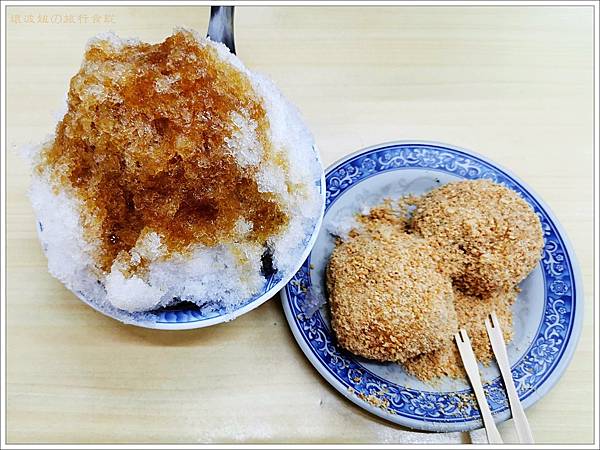 吃完後壞波妞一直說要去對面吃米腸,但再吃晚餐就吃不下了,只好把她拖走去附近吃老周燒麻糬! 挫冰的黑糖味道好棒,不會太甜但又讓人意猶未盡! 麻糬的花生粉是札實的花生顆粒,不是我們吃春捲那種花生粉,也超香。