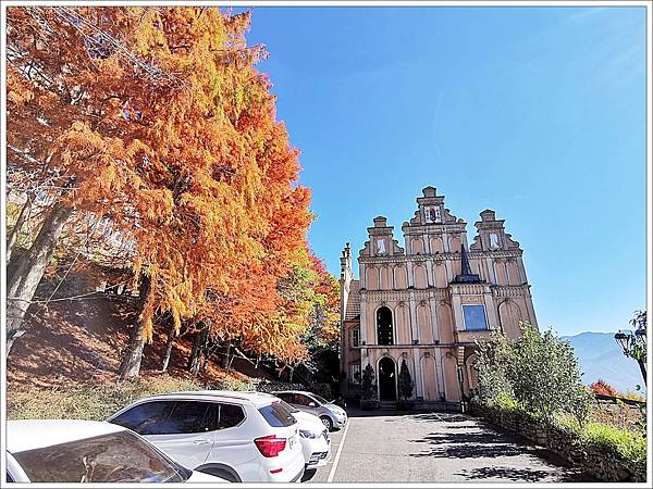 清境佛羅倫斯渡假山莊的「義式鄉村城堡」在11月這個時候,已經被各種的紅葉黃葉包圍,尤其是這時候的落羽松特別美! 因為氣候的關係,清境的落羽松看起來就是「嬌豔欲滴」,不像平地的會有點乾乾的,像是還沒變黃就枯掉那樣。