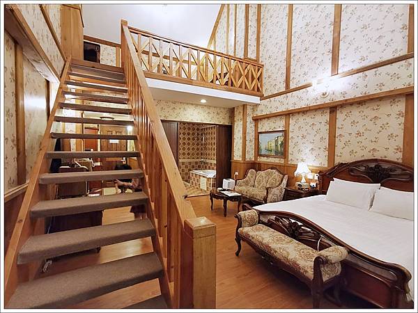 我們今天的房間是「洛可可古典樓中樓四人房」,整個空間超級大!