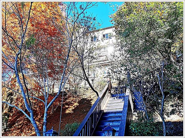 我們今天的房間是在「君士坦丁堡」,前面就可以停車,斜坡上的落羽松也紅得好有異國風情。