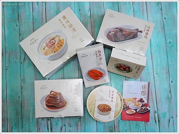 (員外雞湯、干貝米糕、滷燒蹄膀、冰糖醬鴨、黃金烏魚子、紅燒獅子頭)