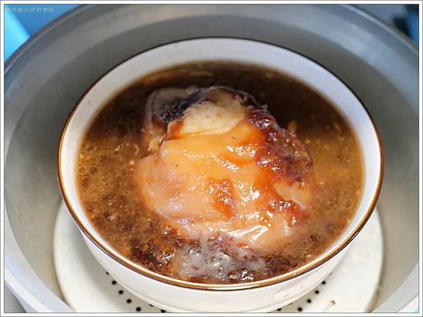 即便是熱呼呼的湯,表面還是浮了一層膠質,就知道全部的營養都被熬出來啦! 以前家裡燉的雞湯雖然濃,但總覺得味道太霸道,喝了會覺得悶悶的,很需要來點什麼緩和一下肚子裡滾來滾去的雞湯! 但果貿吳媽家的員外雞湯,雖然同樣的「濃」卻不「烈」,可能就是獨門祕方讓雞湯的味道溫順了許多,但膠質還是一樣多的像是要把嘴唇黏起來般!
