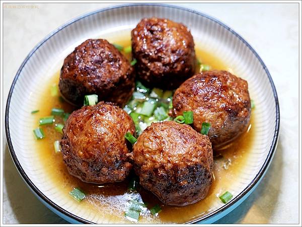 本來以為湯汁很多,用瓦斯爐加熱的過程,又收了一點汁,撒上一點青蔥,看起來就好專業! 每顆獅子頭都渾圓飽滿,象徵團圓美滿!