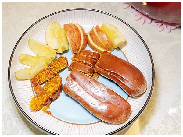 這個烏魚子吃起來不但不腥,而且不會很鹹,不過搭配水果則可以利用水果的甜再調和一下口感,會更加好吃,像我就用了甜度超高的福壽山蜜蘋果,也可搭配水梨或是菜頭口感會蠻清爽唷!