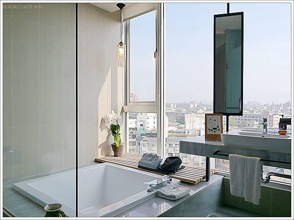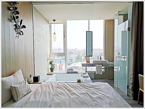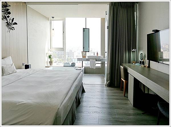今天入住的是「白露行政」一大床的房型,坪數有6.3坪,浴室在靠窗的位置,視野很不錯。