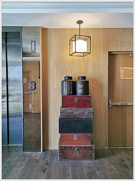 我們今晚的房間在8樓,電梯口疊起來的就是茶箱,也正與飯店的外觀呼應。