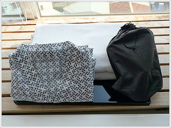 木架上已經準備好浴巾、浴衣及吹風機, 換上浴衣有一瞬間以為到了日本。