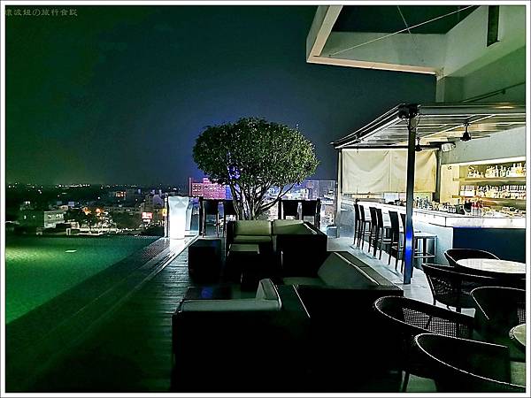 到了晚上,泳池會搖身一變,變成 Lounge 23.5°,大家都知道嘉義正是北迴歸線通過的地方,酒吧取名23.5° 真的很貼切!
