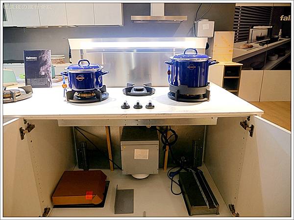 原來這台排油煙機是升降式的,平常沒要用的時候就沉下去跟桌面成為一體,要用時再升上來,完全不佔空間!!