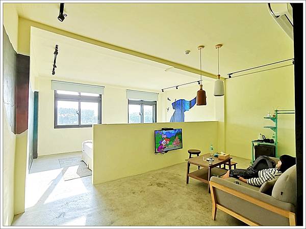 我們今天的房間是「森靜四人房」,葉宿文旅每個房間都有不同的插畫,房間雖然簡約但真的非常大,還有個小客廳。