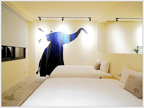 房內擺了二張加大雙人床,睡起來很寬敞。另一邊則是森林裡大象的樣子,這樣子的設計,我們會覺得看到了森林,但又不是全部的森林,進而引起了好奇心想一窺全貌。