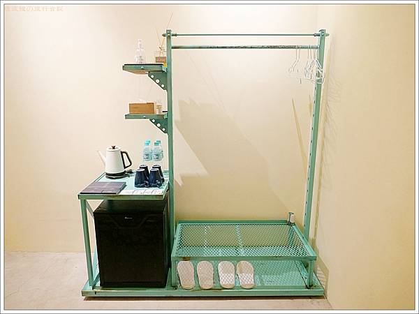 漆上綠色的衣架也顯得很懷舊,不知道是舊物利用還是新的。