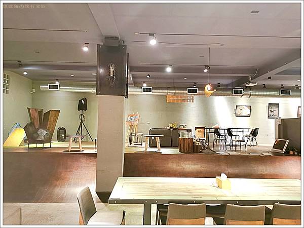 進到Leaf cafe 辦理入住手續,餐廳的櫃台也是葉宿文旅的櫃台。餐廳裡看得到許多以前倉庫留下來的材料作再利用