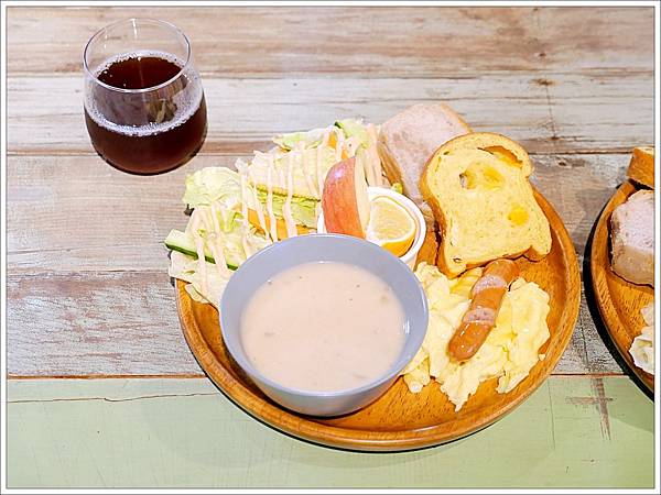 早餐為搭配好的套餐,每個人有一份活力早餐跟一杯飲料。