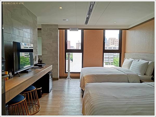 雖然沒有大面積的窗戶,但還看得到一小部份的85大樓。當天晚上下起大雷雨,雷聲只有悶悶的傳到房間,所以對外的隔音是不錯的,不過隔壁沒住人,所以就不知道室內隔音如何。