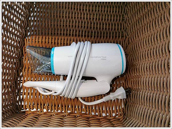 洗手台底下的籃子可以放髒毛巾,吹風機是Philips風量不算小的型號